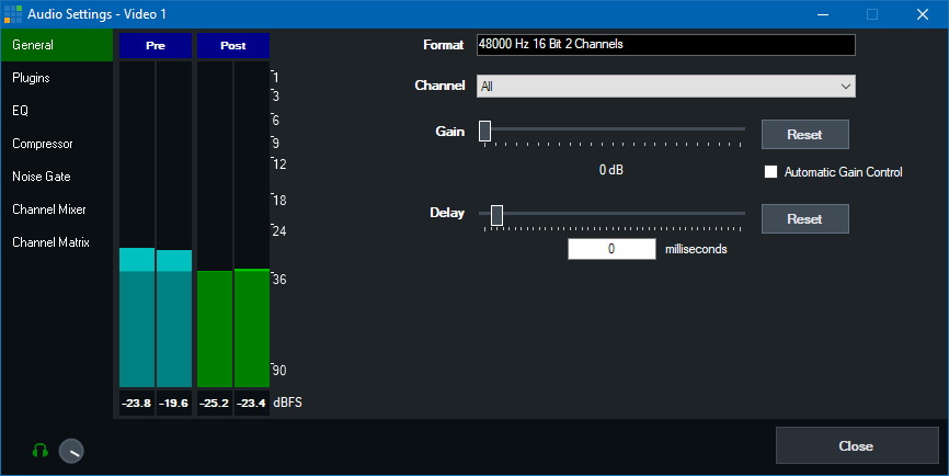 and the post-effects stage (after all effects, volume, gain and delay have been applied)