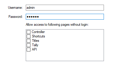 Note: If password is blank, no login will be required, regardless of the access settings.