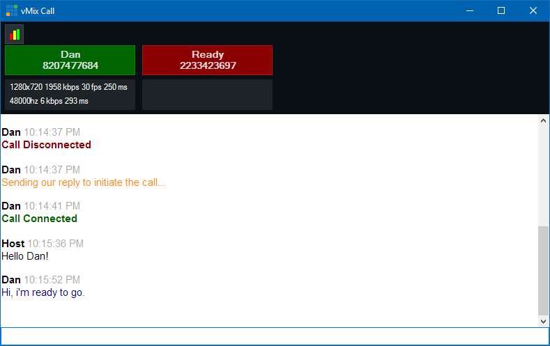 Any message typed into this window will be seen by all guest in vMix, and any message sent by a guest will be seen by both vMix and any other guests within the same vMix session.